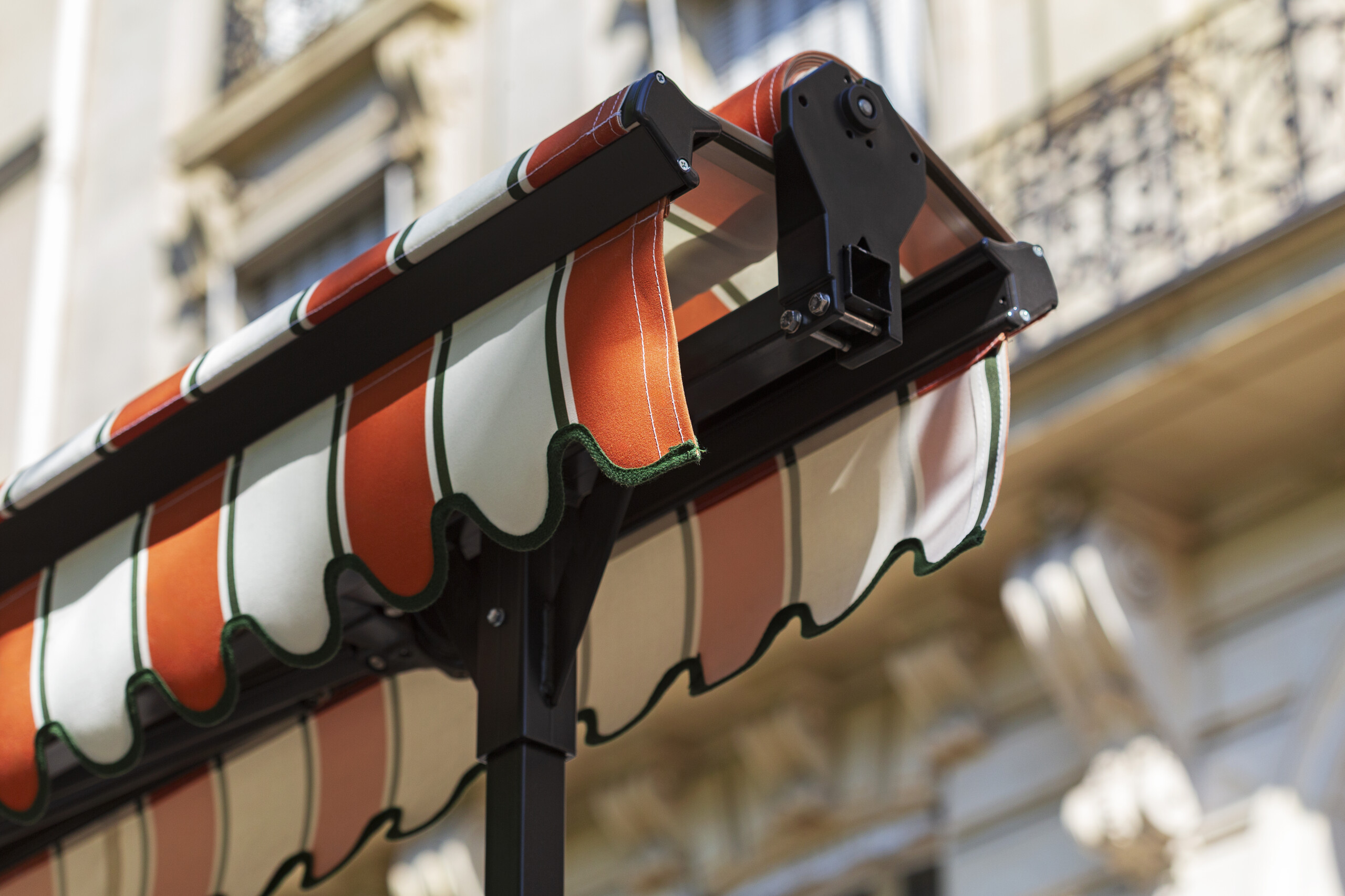 Chez Alphastore, à La Courneuve, nous réalisons des stores double pente sur mesure, conçus pour répondre aux contraintes techniques comme aux exigences esthétiques de nos clients.
